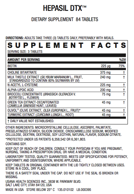 The liver serves many important functions. It supports the body’s normal metabolism of nutrients, including fat and cholesterol, and helps synthesize glycogen for energy. In an increasingly toxin-laden world, supporting our natural detoxification processes is more important than ever. HepaPlus promotes healthy liver function, and the InCelligence activity delivers a highly effective blend of nutrients that actively support the body’s natural protective processes. These processes include enhancing healthy liver function and normal detoxification process, and supporting body’s endogenous antioxidants, such as glutathione, which is most concentrated in the liver. With two patents pending, the Hybrid technology of HepaPlus allows USANA to formulate a truly unique supplement that gives your liver what it needs to function at optimal levels.